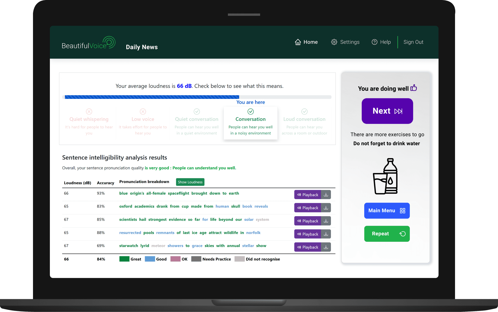 “It is great that I can use it every day on my computer at home. My speech is improving because I can practice daily and reach my goals”