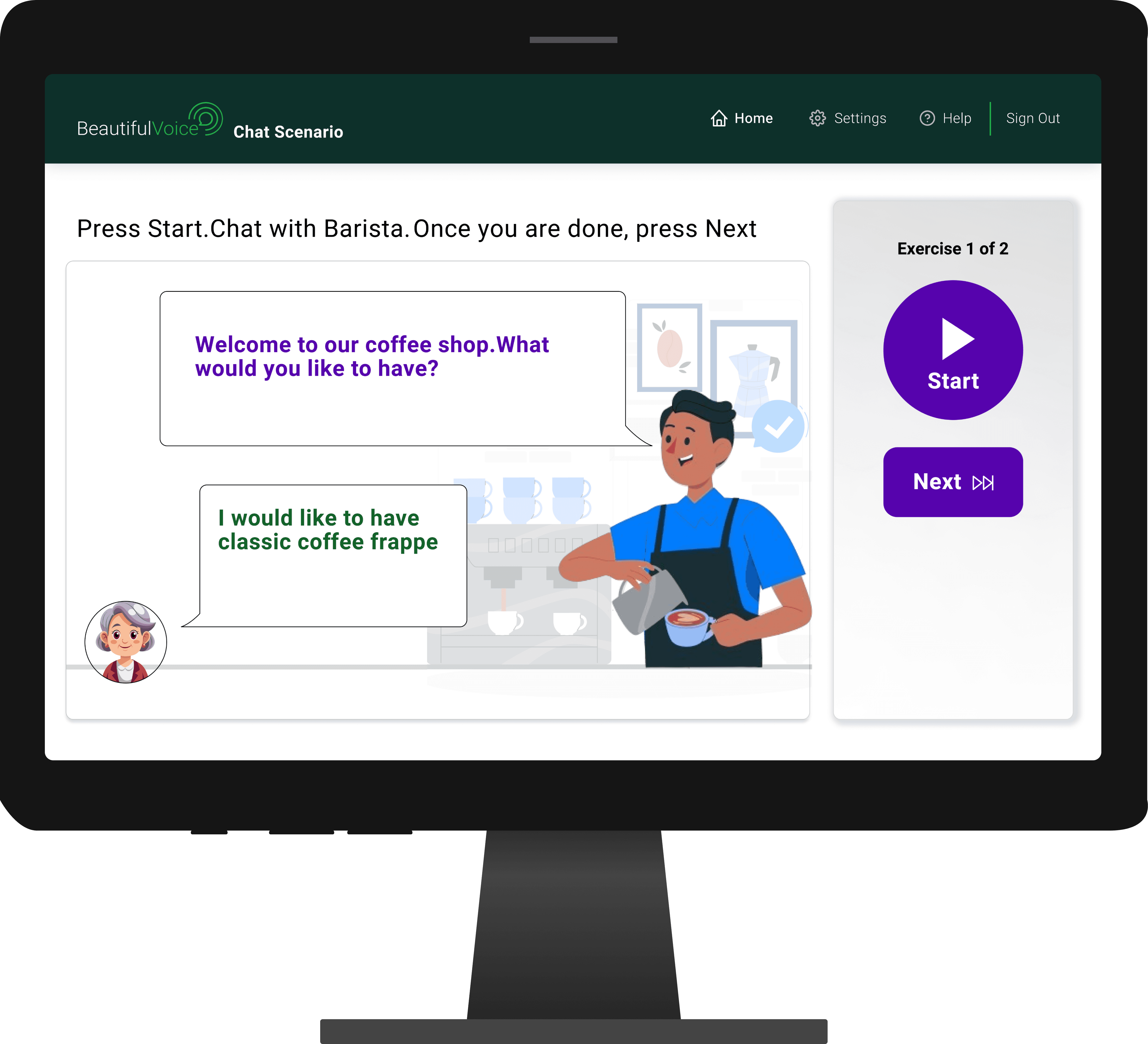 Beautiful Voice creates therapy exercises tailored to each patient's specific needs and personal interests, while also simulating real-world conversations and interactions.